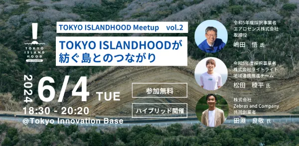 「TOKYO ISLANDHOOD with STARTUPS 」(スタートアップによる島しょ振興促進事業)は、東京の島しょエリアの魅力向上や地域課題の 解決を目的として、スタートアップや個人事業主等による島しょエリアでのビジネス展開を支援するプログラムです。